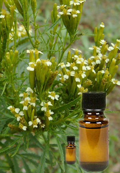 Uses: Tagetes oil is valuable in keeping insects at bay, and can help with parasitic and fungal infestation. It is used for chest infections, coughs and catarrh, dilating the bronchi, facilitating the flow of mucus and dislodging congestion and can be used in cases of skin infections. It has a healing effect on wounds, cuts, calluses and bunions.